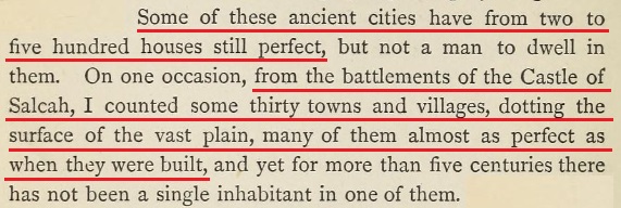 If you believe that structures built 4,000 years ago were/are still around, I have a bridge to sell you. For me, the construction of the presented buildings happened fairly recently. What's your opinion on that? Here is Mr. Porter describing the condition and state of the structures he observed.