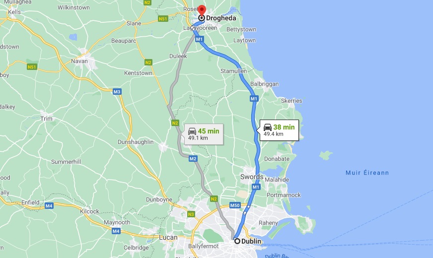 As you can see, Drogheda is also a town located 25-30 miles north of Dublin. I did not look into its hidden history yet, but on the surface we have this nice crescent moon.